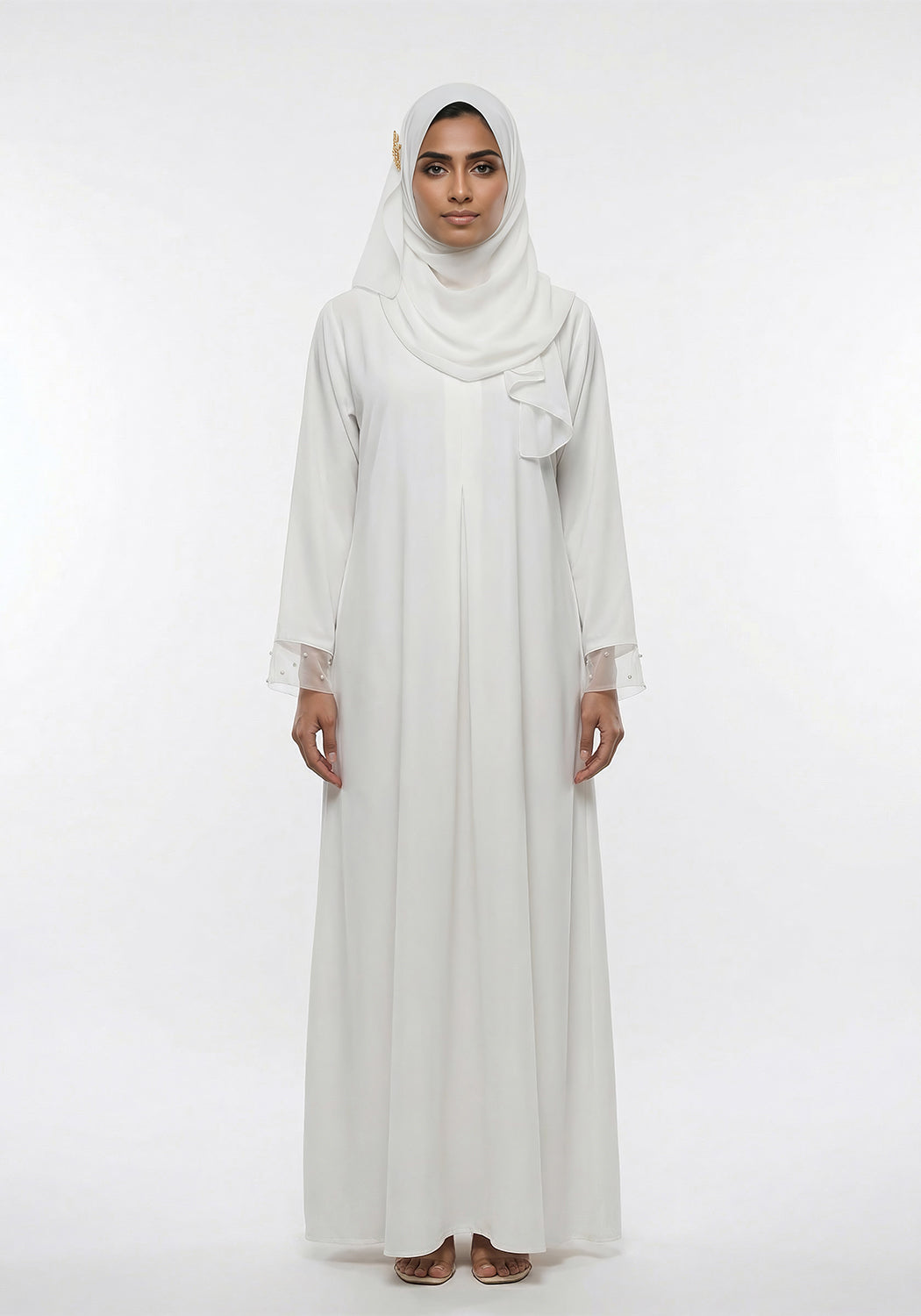 WHITE CLASSIC FRONT-CLOSED ABAYA Hijabi