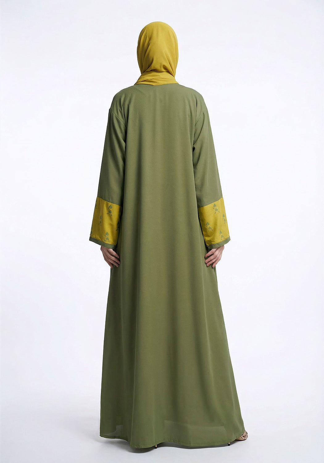 Enhance your wardrobe with this elegant double-layered Abaya, crafted from premium-quality fabric for exceptional comfort and style. The thoughtfully designed sleeves feature a subtle block-print detail that beautifully complements the inner layer, adding a refined touch to the overall look. casual, formal, or festive. Invest in this piece and elevate your fashion sense.