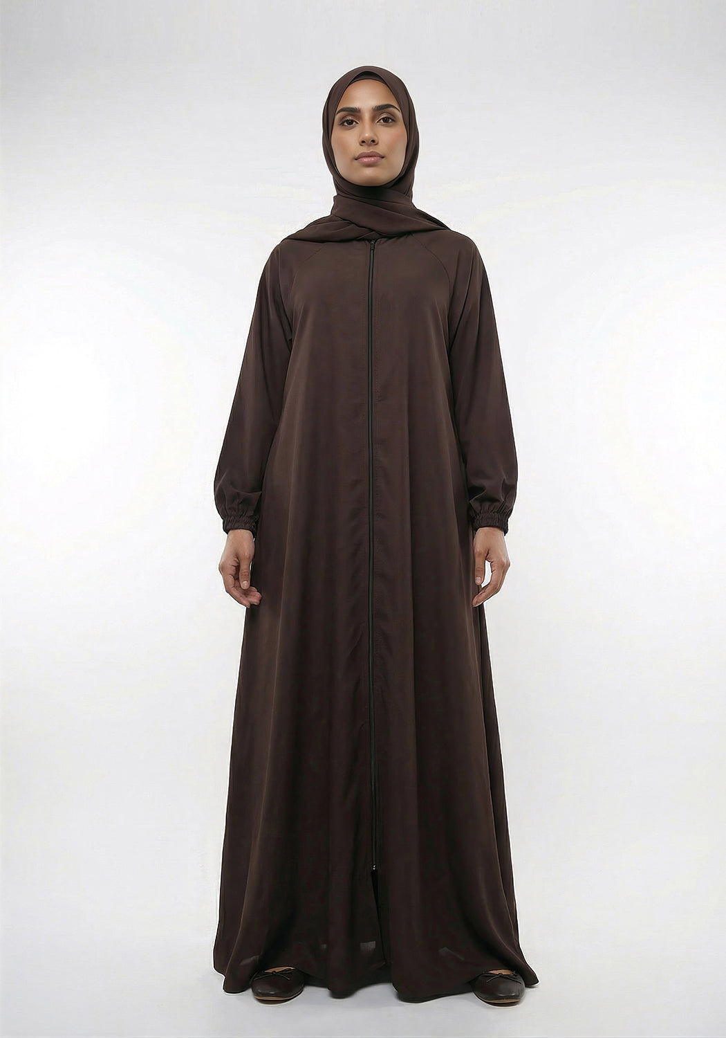 Zipper A-Line Abaya- Brown