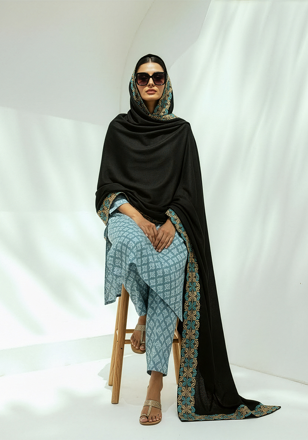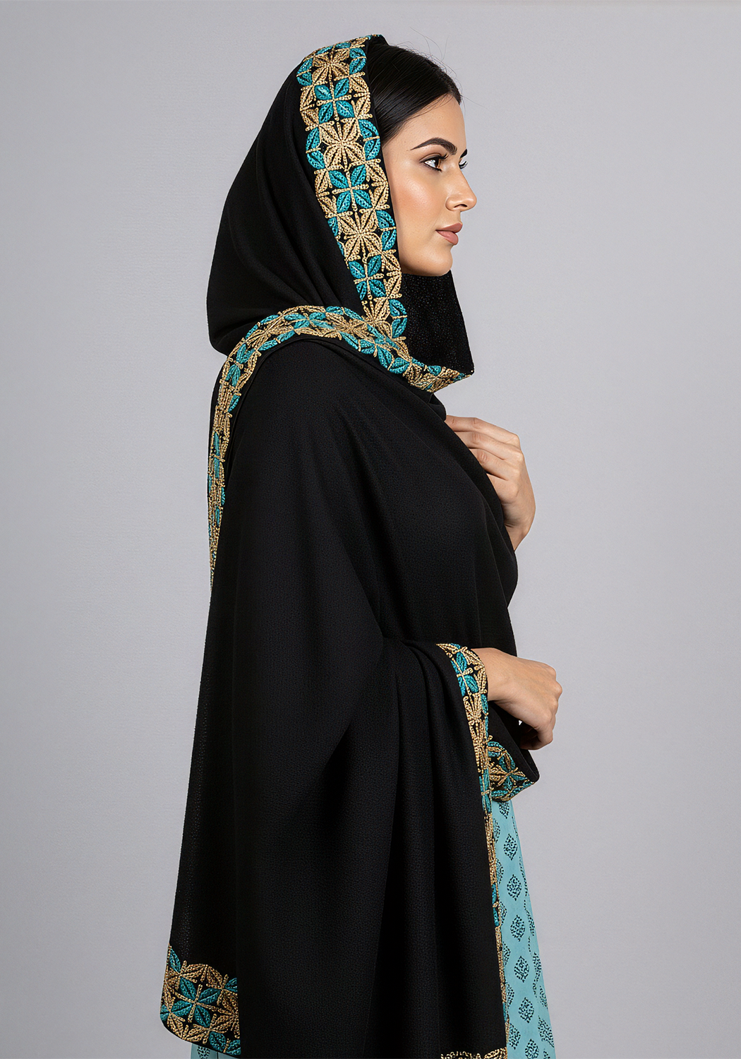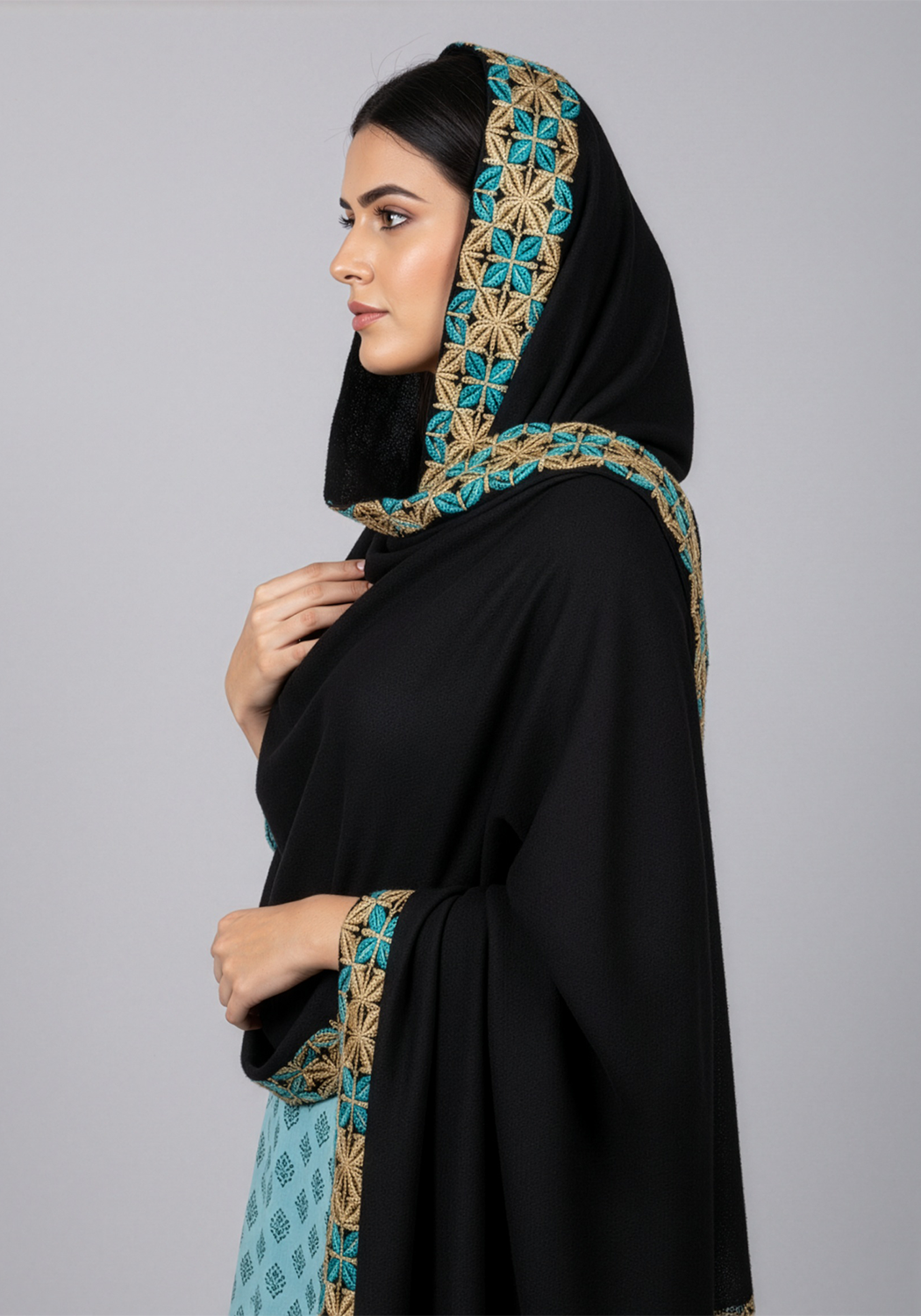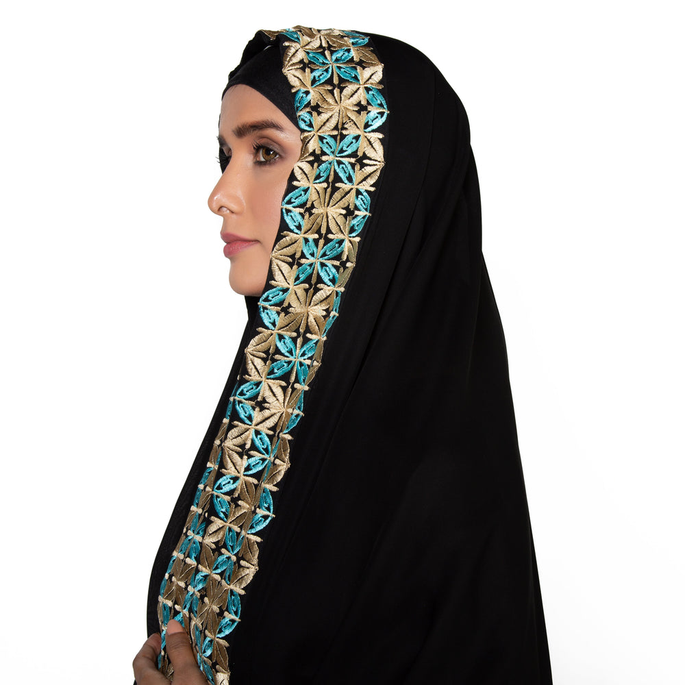 Embrace traditional modest fashion with this lovely Blue Petal Chadar made with exquisite Chiffon Fabric and intricate embroidery - adding to its worth.
