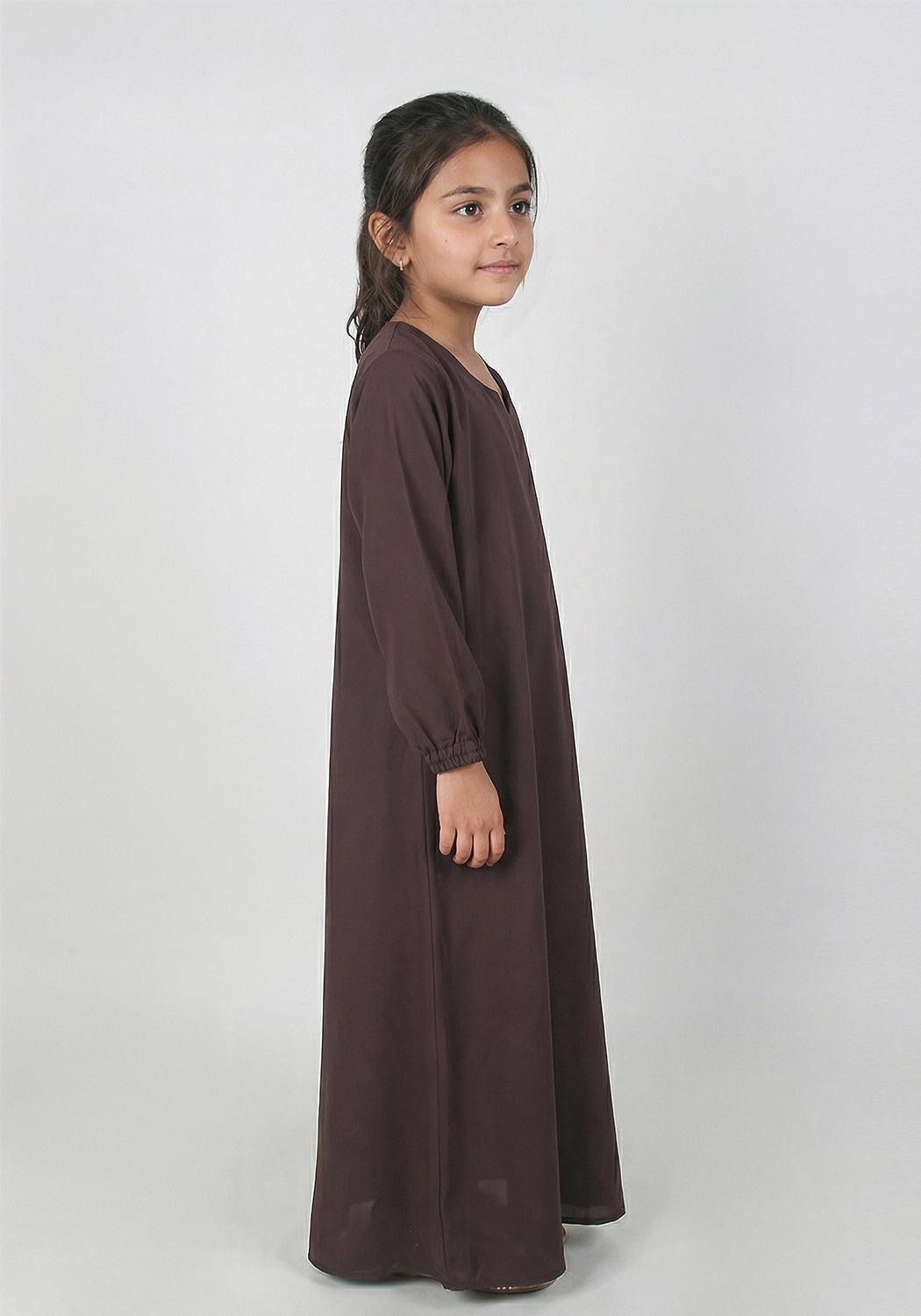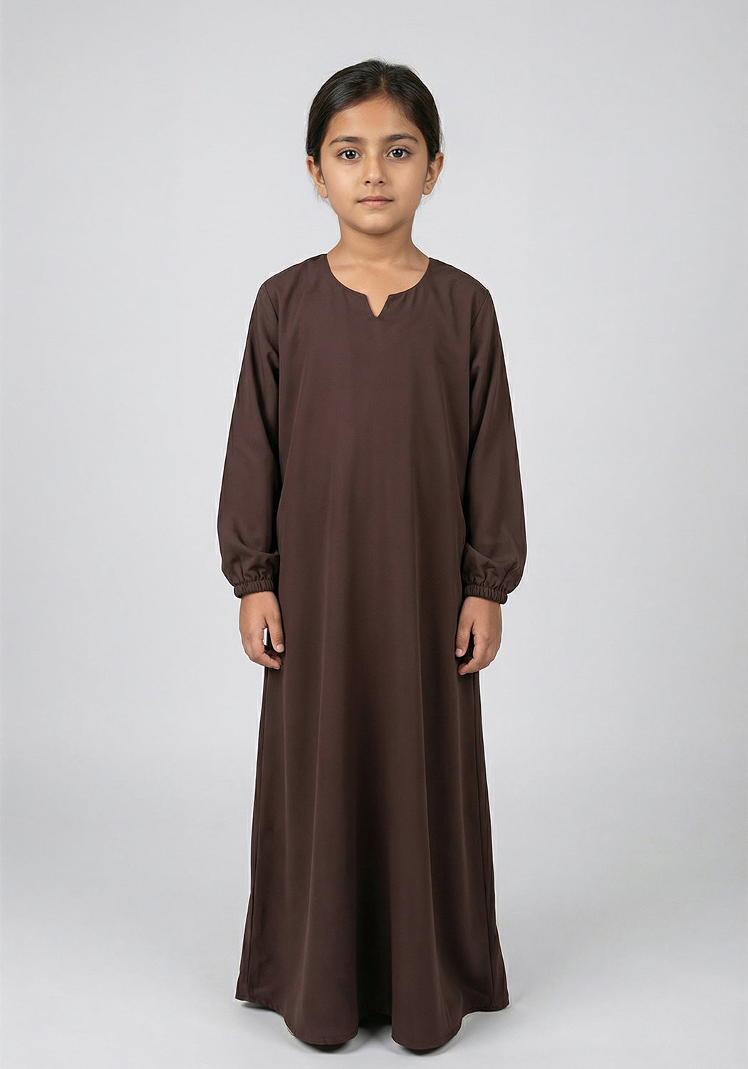 Kids Front Closed Abaya Brown