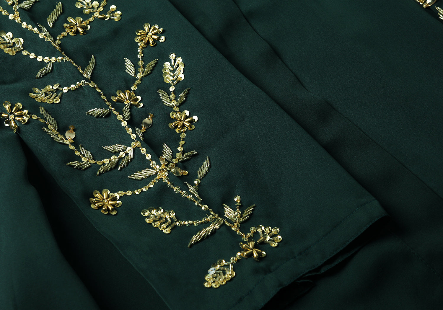 This graceful abaya is made from lightweight NIDA fabric, ensuring comfort all day long. The elegant handcrafted sleeve detailing enhances its simple yet refined design.