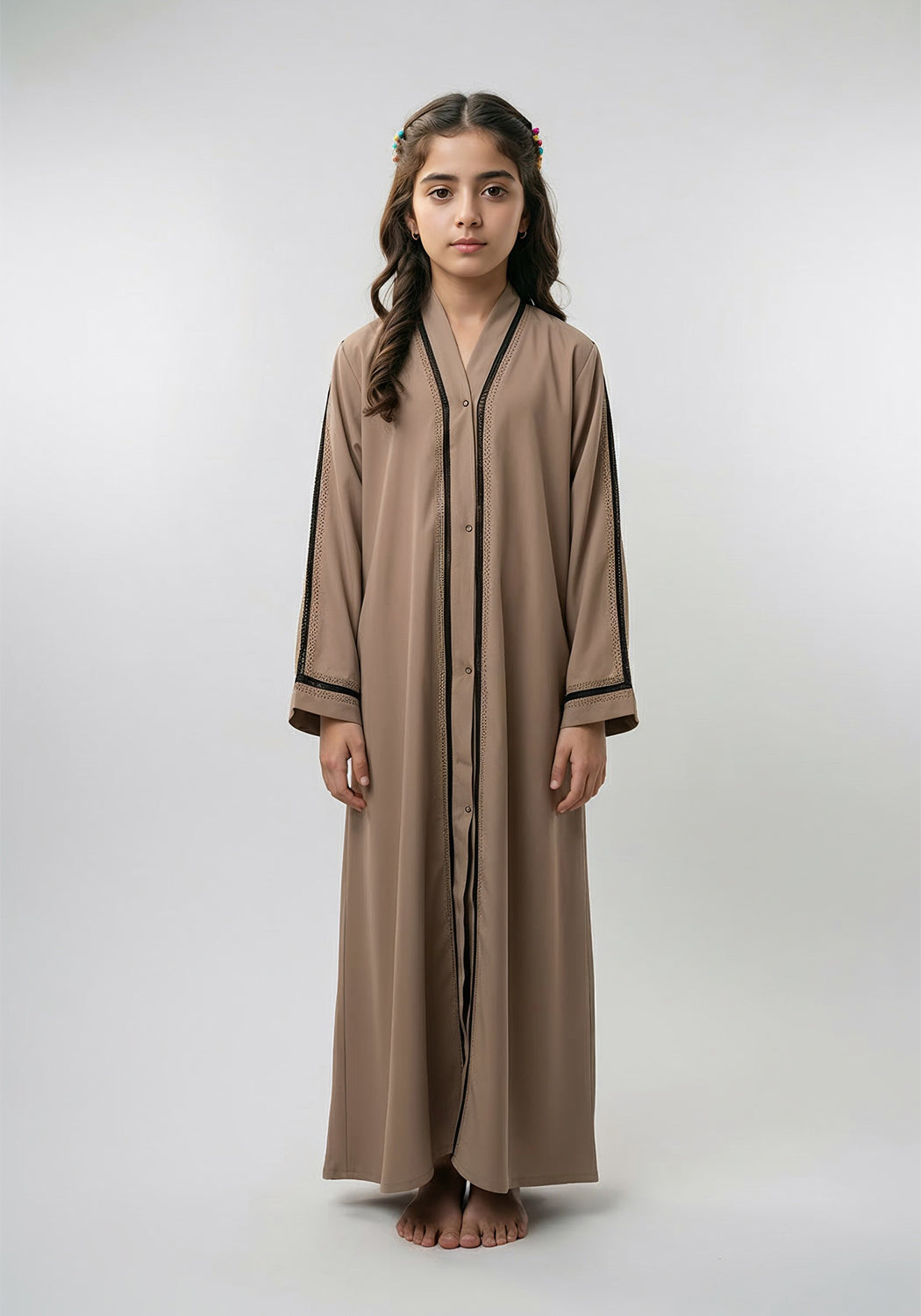 Fancy Kids Front Open Abaya Fawn