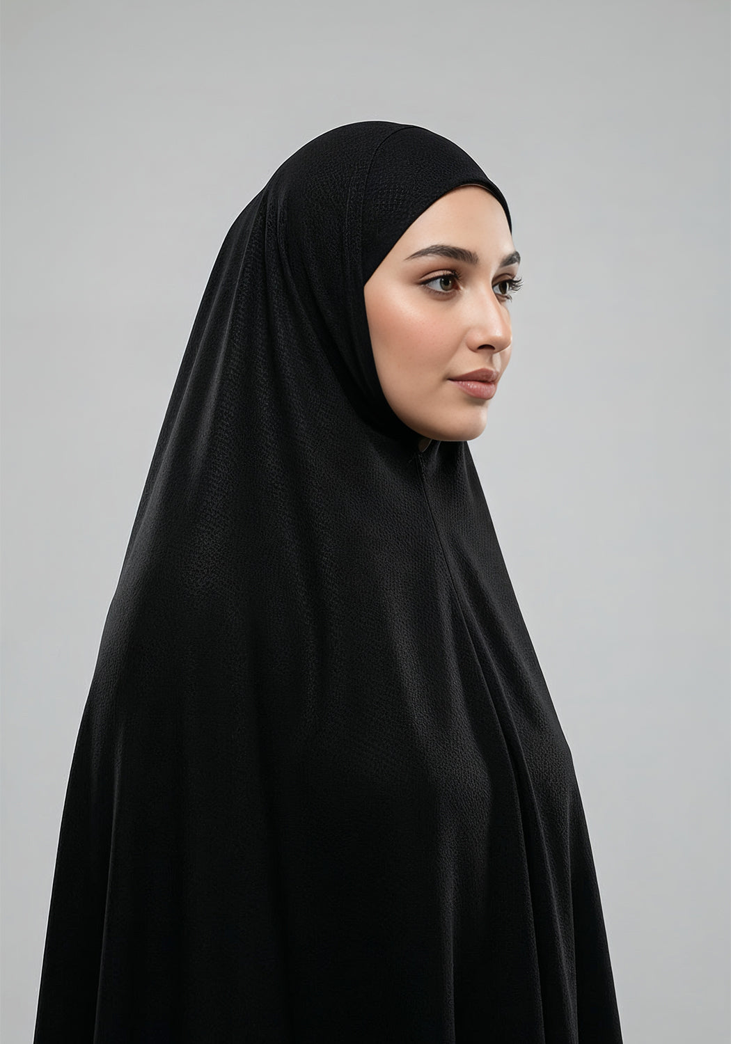 Hijabi introduces these wrap around Irani chaddars. Elasticated from the top so that it can comfortably sit over the head without slipping off. Available in two different designs.
